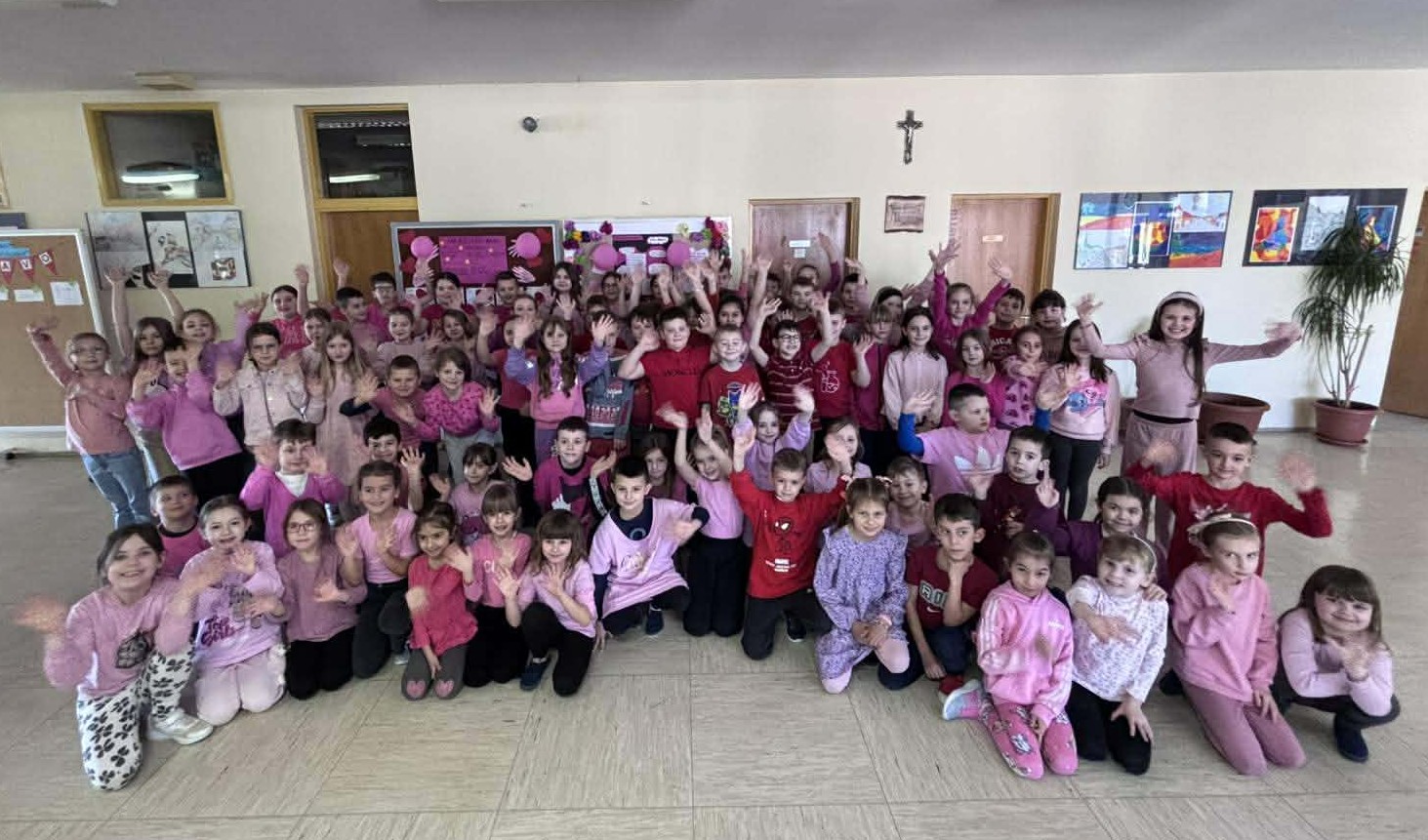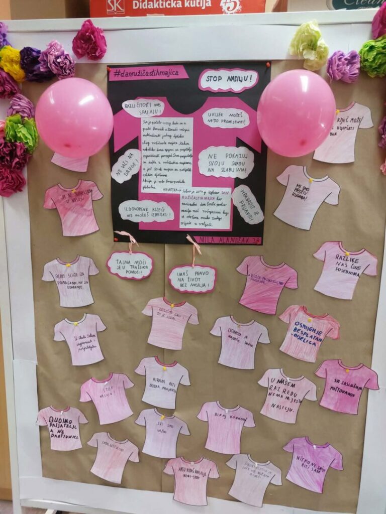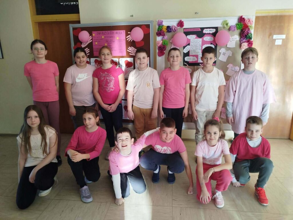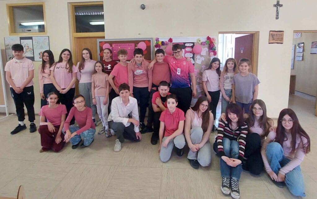 U našoj školi obilježili smo Dan ružičastih majica, dan posvećen borbi protiv vršnjačkog nasilja. Učenici i učitelji odjenuli su ružičaste majice kao znak podrške prijateljstvu, toleranciji i međusobnom poštovanju.