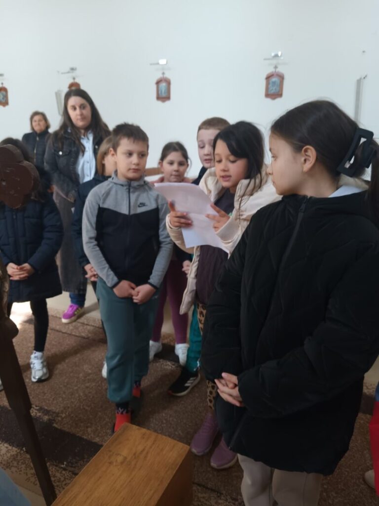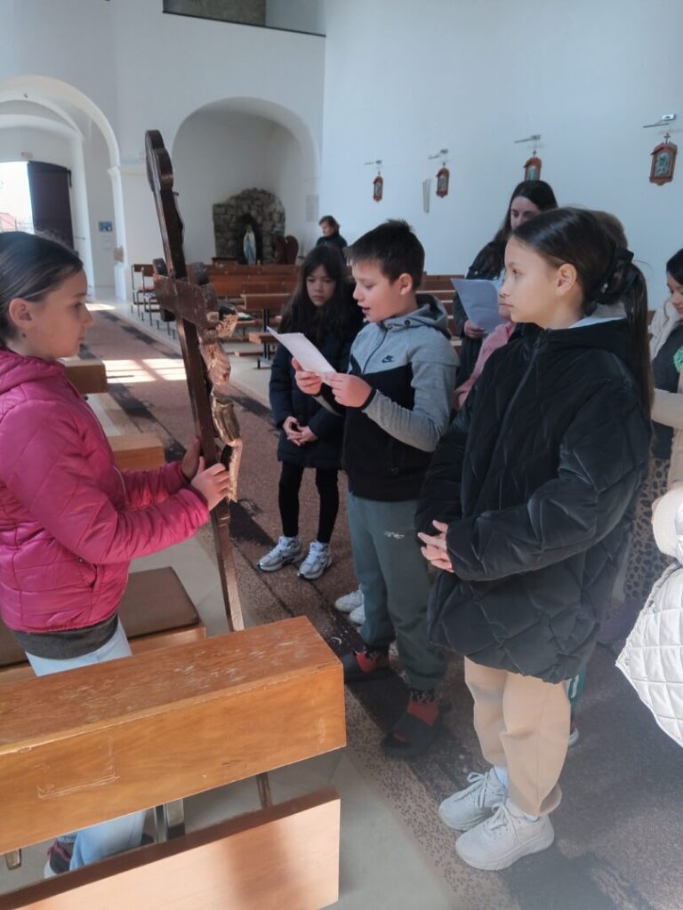 Danas su djeca PŠ Sotin zajedno s učiteljicama Ružicom i Tanjom te vjeroučiteljicom Anicom molila pobožnost dječjeg križnog puta. Započeli smo s riječima “Isuse, evo nas na kraju tvoga križnoga puta, ali na početku našeg životnog puta” Hvala ti Gospodine što si nam otvorio nebo, da mi djeca, ovogodišnji prvopričesnici Eva i Josipa, ali i sva naša školska djeca svojim životom, a pod tvojom zaštitom uz naše roditelje i obitelj rastemo i jačamo u vjeri i jakosti, uvijek tebe sljedeći u svim našim školskim i životnim izazovima.