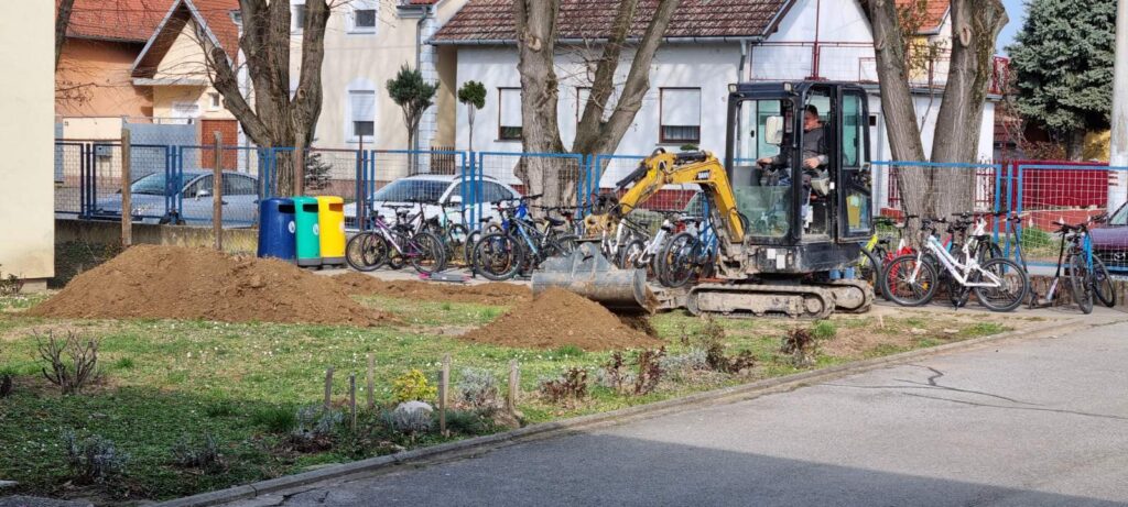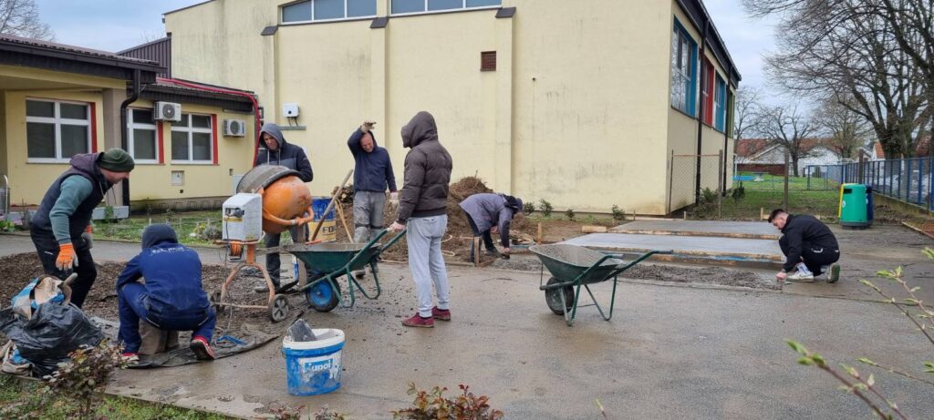 Dok se učenici odmaraju, naši su učitelji (Vedran Knežević, Jurica Matanović, Goran Sauka i Damir Vinković) i tehnička služba (Davor Ivanković, Pavao Kovačević i Filip Suman) odradili odličan posao! Izgradili su proširenje parkirališta za bicikle! Njihovom radu prethodilo je kopanje temelja koje je školi donirao naš bivši učenik Danijel Franjković, na čemu smo neizmjerno zahvalni!
