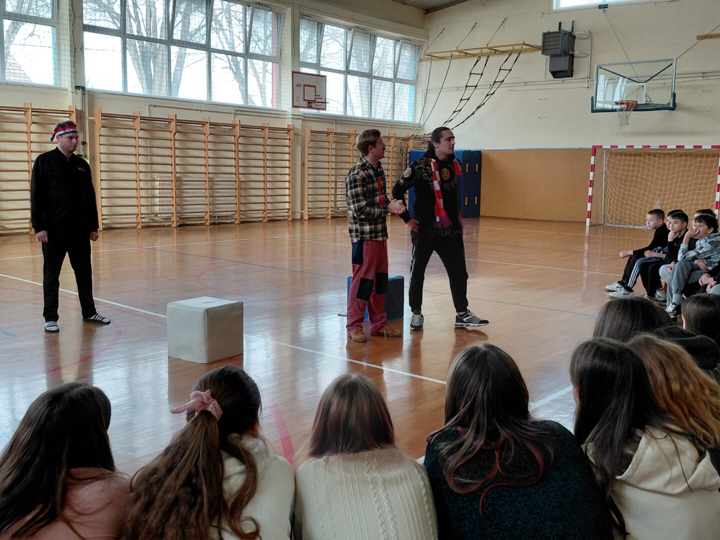 Glumci Kazališta Lutonjica Toporko priredili su našim učenicima 5.-8. razreda nesvakidašnji doživljaj u našoj školskoj dvorani. Jučer, 3. veljače, i danas, 4. veljače, učenici su gledali predstavu “Raspucavanje” koja im je prenijela snažne poruke o toleranciji, prijateljstvu, odgovornosti, zajedništvu. Iako je riječ o nimalo neobičnom školskom događaju, predstava je pokazala kako iza svakog događaja i ponašanja ljudi mogu stajati neke teže okolnosti koje su uvjetovale upravo takvo ponašanje.