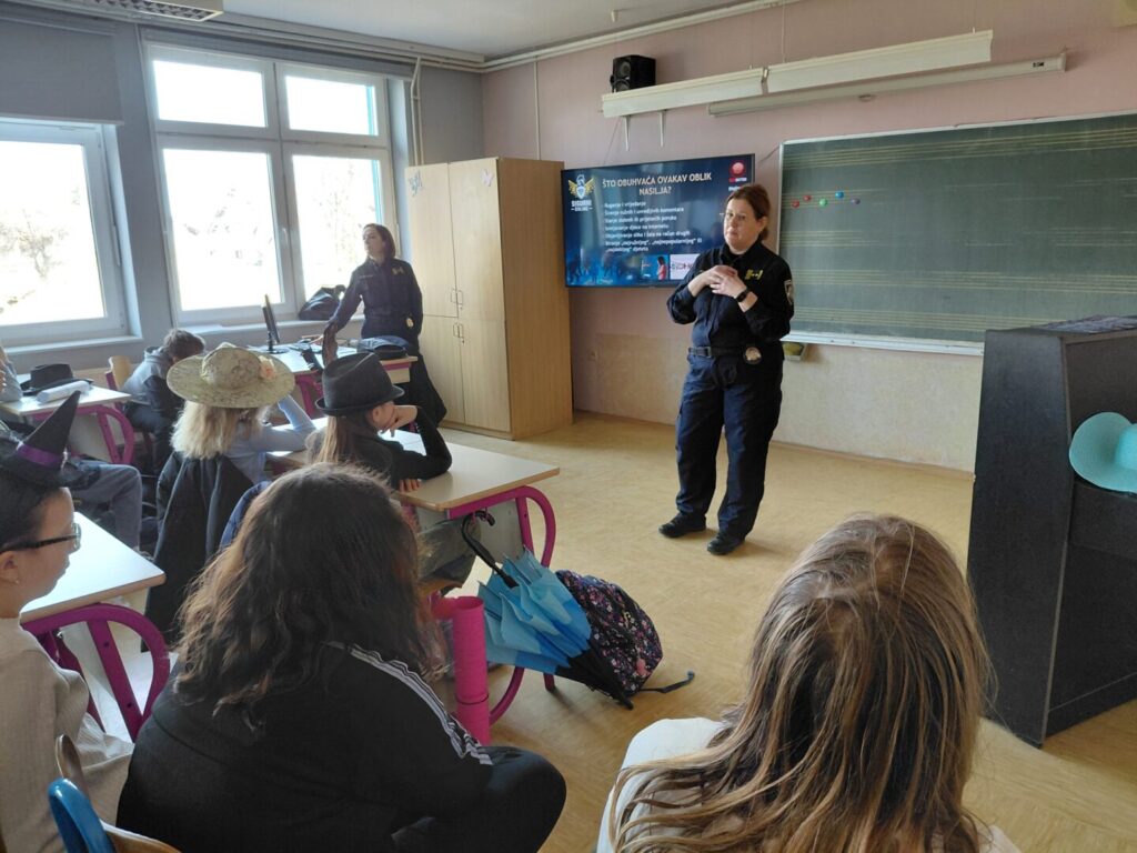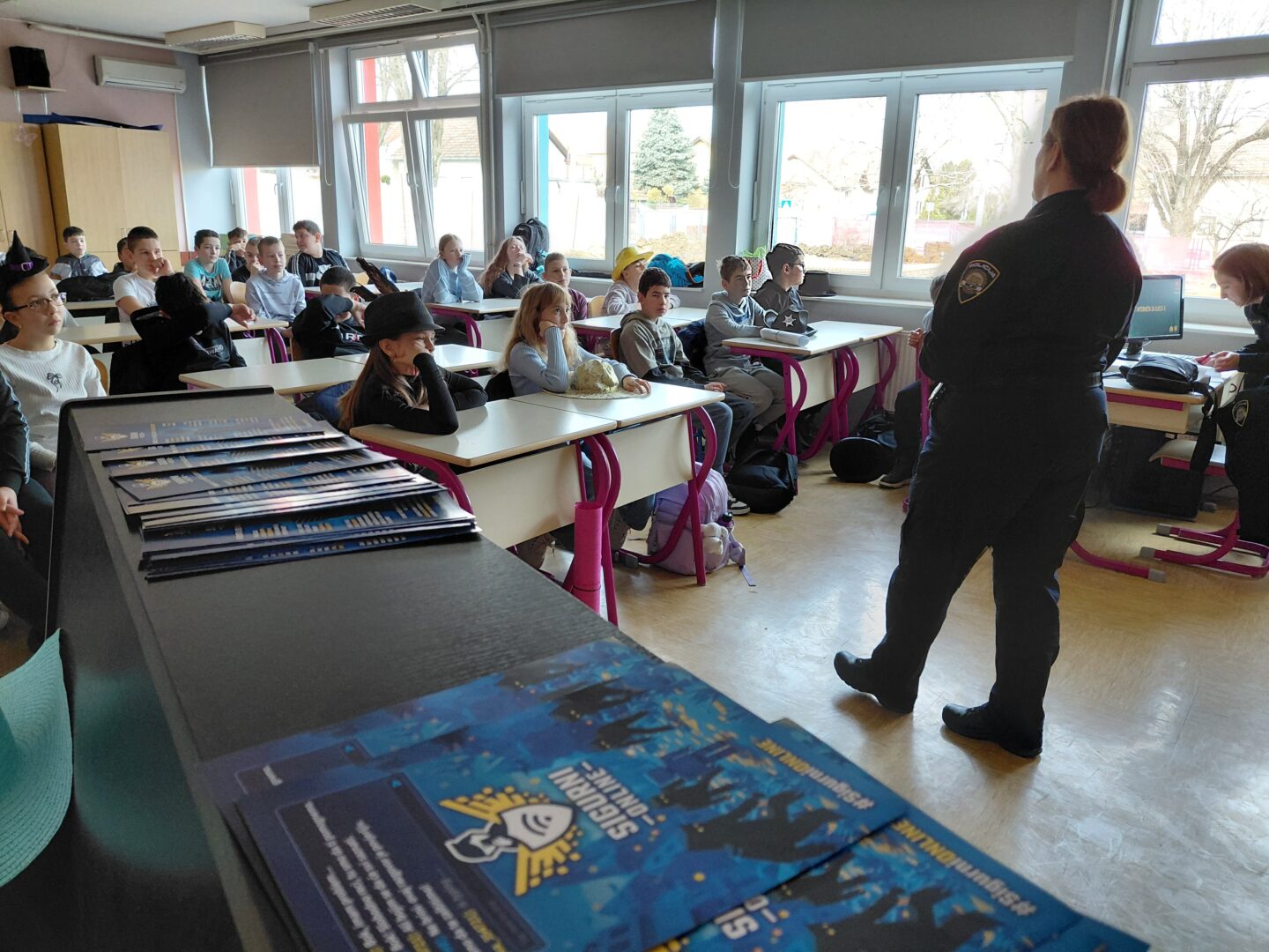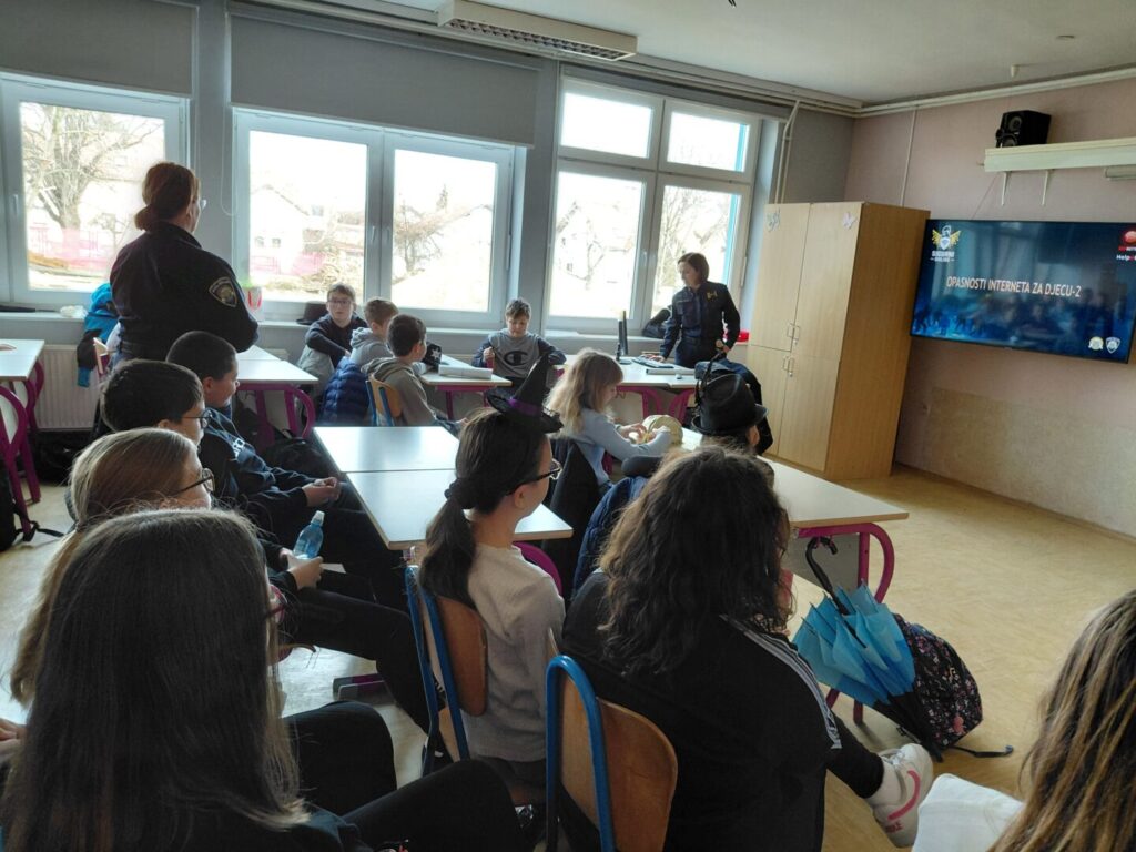 Učenici 5. razreda slušali su, u petak 13. veljače, predavanje policijskih službenica o sigurnosti na internetu. Povod ovom predavanju bilo je pokretanje internetske platforme za pomoć djeci i mladima u slučaju neprimjerenog ponašanja na internetu. Riječ je o platformi Help4u, a podsjetili su učenike i na aplikaciju Red button preko koje mogu prijaviti zlostavljanje na interentu.