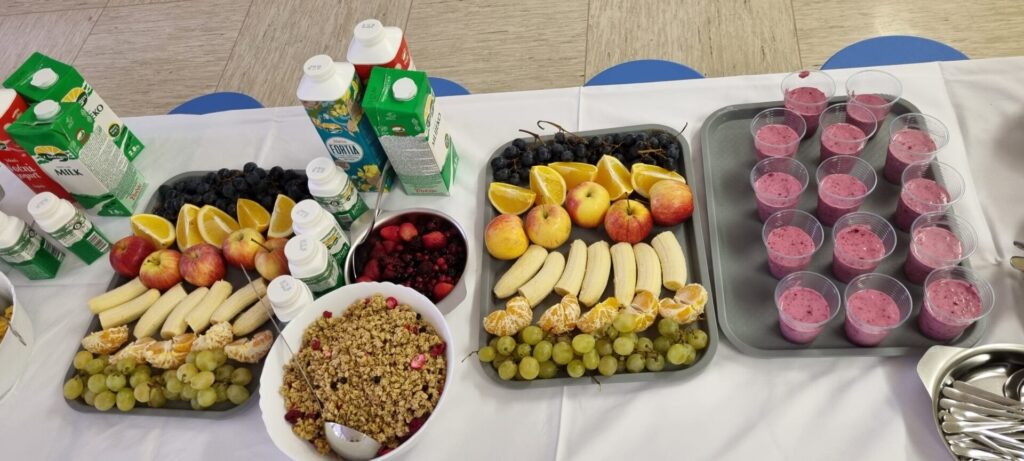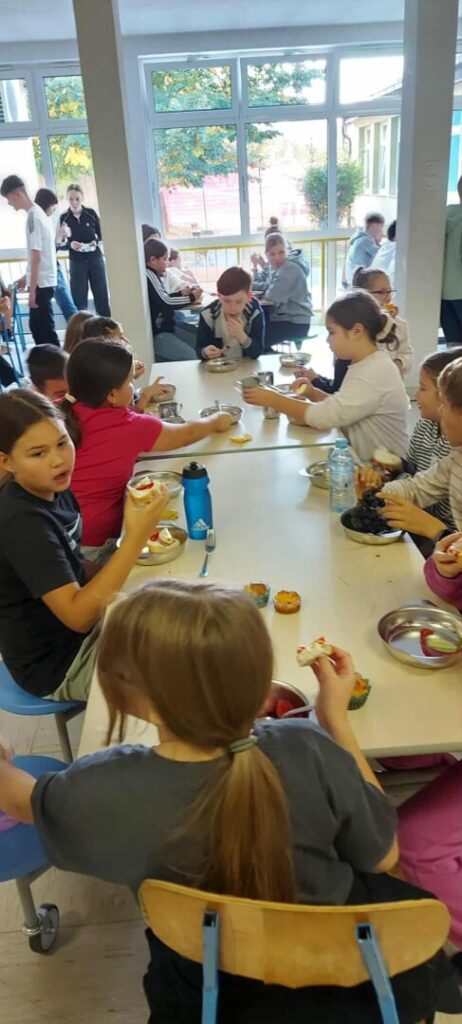 Učitelji i učenici naše škole su tijekom ovoga tjedna proveli mnoge aktivnosti i radionice u svojim razredima (više o tome objavit ćemo naknadno), a naglasak je bio na zdravoj prehrani i zdravim namirnicama. U četvrtak, 16. listopada, kad je ujedno i Svjetski dan hrane, učenici naše škole dobili su poseban zdravi doručak koji su pripremile naše kuharice. Doručak je bio poslužen u obliku švedskog stola, a učenici su sami slagali svoj zdravi obrok. Doručak su poslije i ocijenili kroz anketu. Raznolik i zdrav doručak potaknuo je učenike na razmišljanje o važnosti zdravog obroka. Hvala našim tetama kuharicama koje su doručak osmislile i pripremile za sve nas.