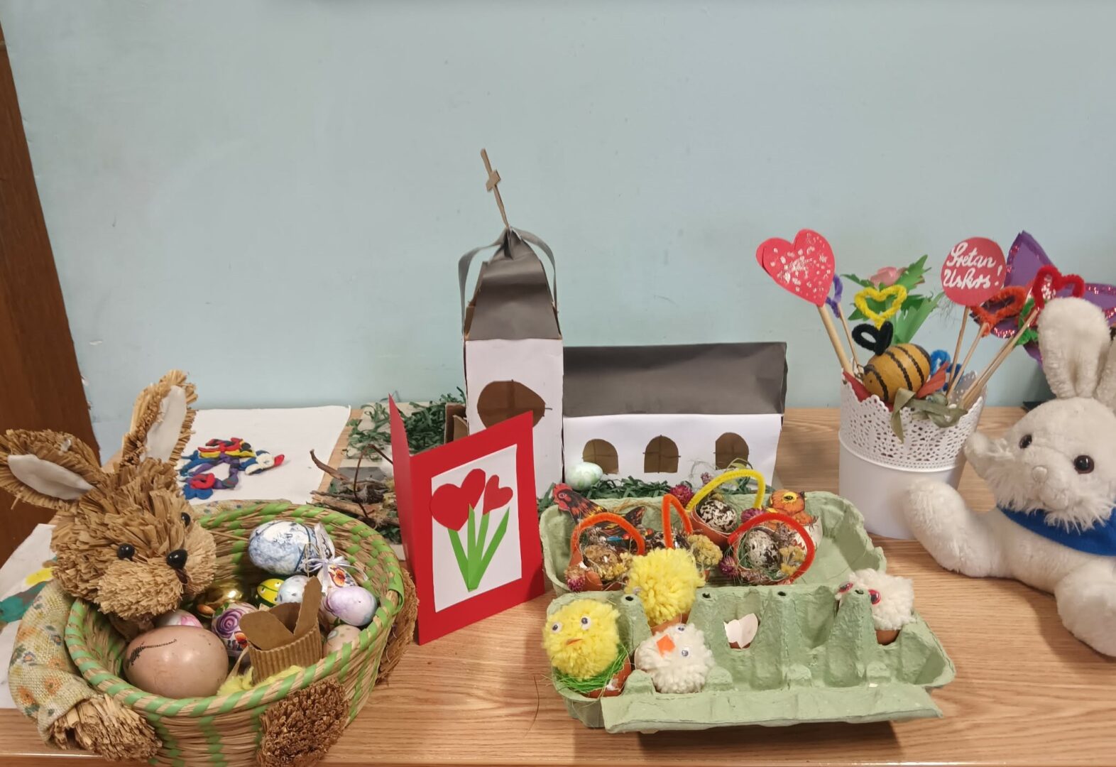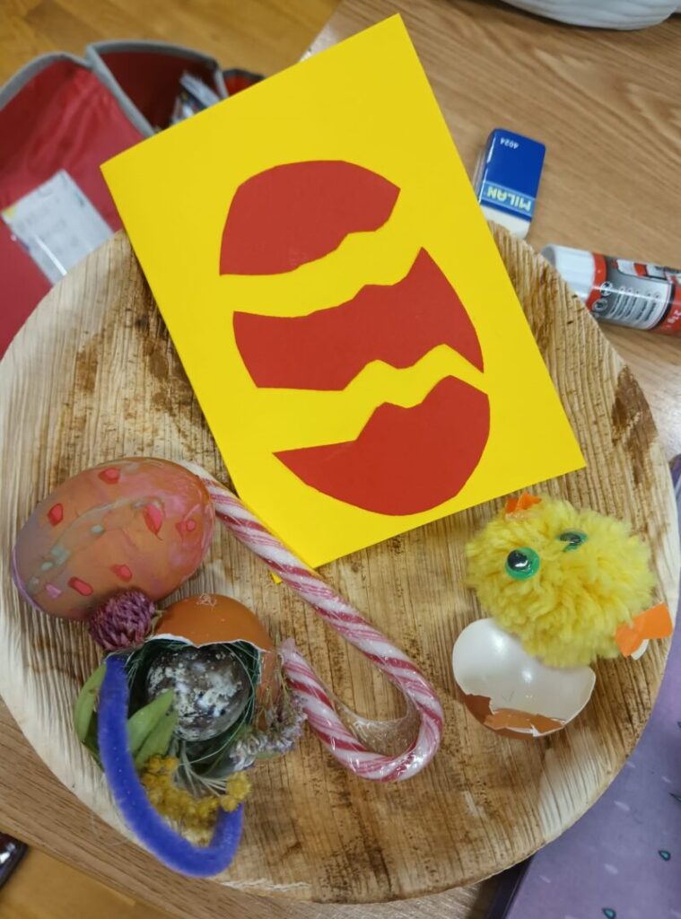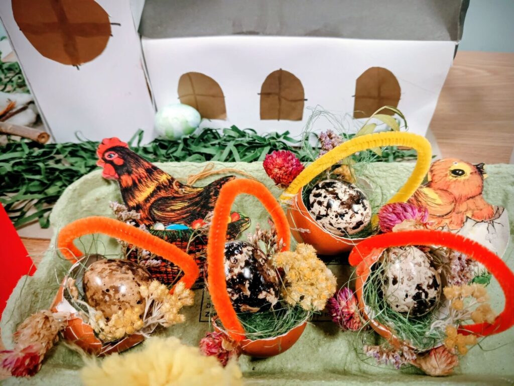 Slikali smo, pjevali, izrađivali čestitke… Od prirodnih materijala (suho cvijeće, ljuske jaja, vunica…) izrađivali smo malene košarice i piliće. Baš smo se lijepo zabavili i radosnih srca svima želimo miran i sretan Uskrs!